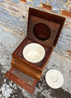 Meuble à pot de chambre Napoléon III en acajou blond et faïence.