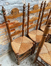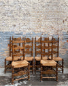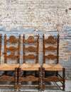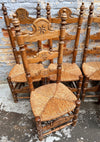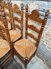 Série de 6 chaises rustiques de style Renaissance espagnole en hêtre et assises en paillage.