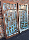Paire de fenêtres à vitraux en chêne, début du 20ème siècle. Restauration à prévoir.