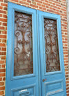 Porte double en sapin, grilles en fonte, fin du 19ème siècle.