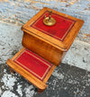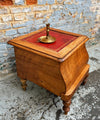 Ancien tabouret d'aisance en noyer et cuir, fin du 19ème siècle.